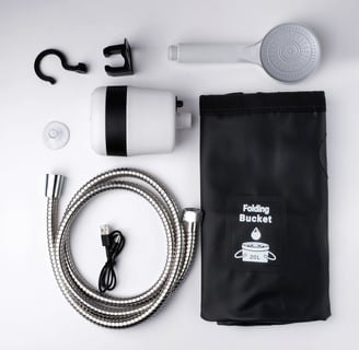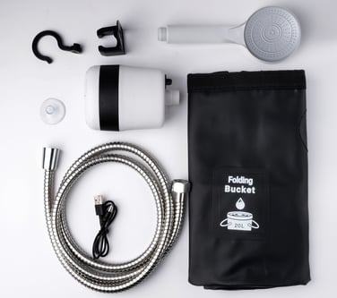Compact and lightweight, this portable shower setup is designed for convenience and durability. Simply fill the collapsible bucket, charge the pump, and enjoy a refreshing rinse wherever you are—no heavy equipment or plumbing required.