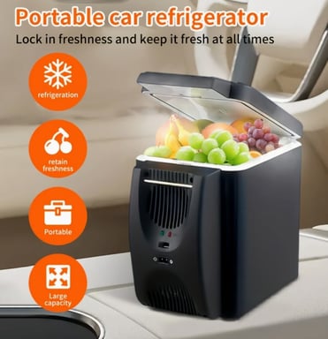 The 12V Car Refrigerator - 6L Portable Mini Freezer is compact, reliable, and spacious enough to handle multiple meals. Its dual-function insulated design makes it ideal for hot or cold storage.